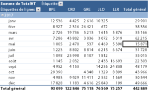 Pour conclure, l’utilisation des tableaux croisés dynamique offre des possibilités très étendues. Cela dépend de la quantité d’informations présentes dans l’état : un simple état de facturation ou l’inclusion de champs supplémentaires (quantité de produits, d’heures, coût de revient…) qui permettent d’enrichir l’analyse.