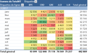 Le tableau croisé dynamique est alors une source de productivité et permet également d’innover par des états clairs et visuels tout en assurant une traçabilité (un clic sur un chiffre permet d’afficher les occurrences correspondantes).