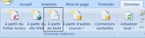 - Importer le fichier FEC à l’aide du menu Données, puis « A partir du texte ». L’assistant d’import s’ouvre.